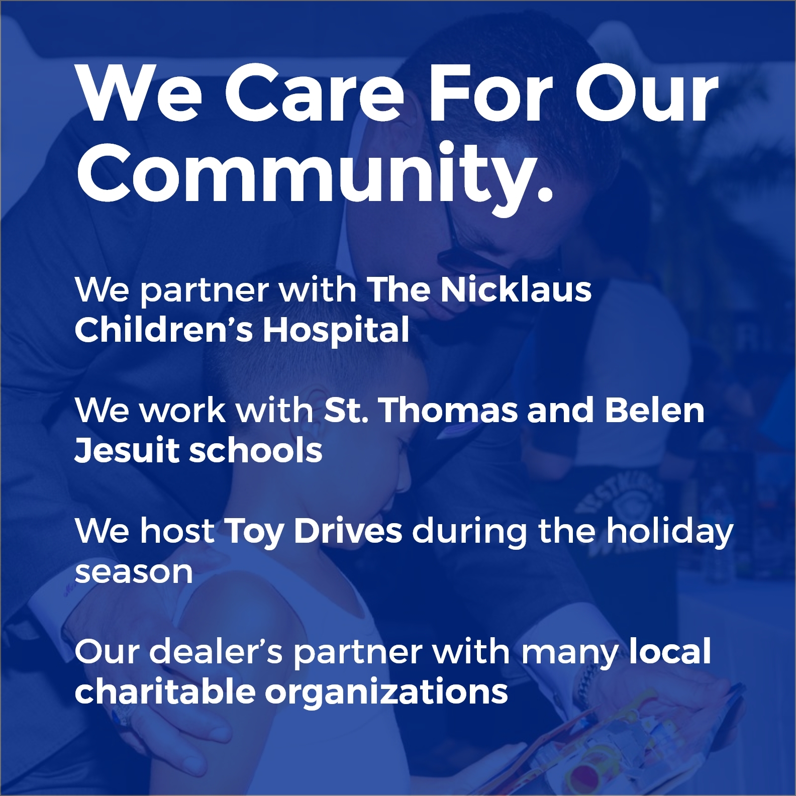 Each year, we purchase thousands of holiday toys for children in all the communities we serve.